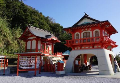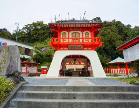 龍宮神社,皆被 日本 人称为「结良缘胜地」,因浦岛太郎和海龟而有名,海龟会定期在海岸一带产卵