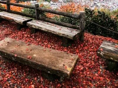 秋后山坡上枫叶红了,路上红叶满地,景色更加优美