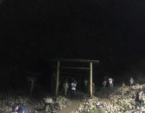 【景色】河边漂亮的洞穴神社 【趣味】在Iwato河边一个洞穴中有一个很漂亮的神灶,有堆放的小石...