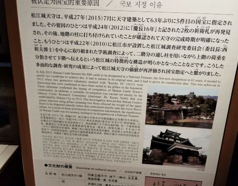 所以这里有一种非常历史的感觉,而且因为地点偏远,对游客并没有很多限制,参观路上比较自由,展品也...日本的名城号称有百选,但是其实正儿八经的保留下来的也就姬路,松江,松本和犬山四座,松江估计算是国宝级城里最难走的了吧,要不是顺路来出云大社,以岛根县的位置,基本上也不会来了,也正是如此反而这样的小...日本的名城号称有百选,但是其实正儿八经的保留下来的也就姬路,松江,松本和犬山四座,松江估计算是国宝级城里最难走的了吧,要不是顺路来出云大社,以岛根县的位置,基本上也不会来了,也正是如此反而这样的小城市让人感到很平静。 松江城所在是一个比较大的公园,爬上一段山坡就能看到天守阁,进入天守需要买门票,不过不贵,外国人还有特别优惠。 松江天守能够保留下来主要归功于当地的几个地主的保护,所以这里有一种非常历史的感觉,而且因为地点偏远,对游客并没有很多限制,参观路上比较自由,展品也没刻意制止拍照。天守虽然不高,但是里面的楼梯好陡,爬上爬下还是需要小心一点,爬到顶楼可以远眺宍道湖的景色。 个人觉得这里和姬路是没法比了,和松本城相比这里也小了一圈,而且可能是天气原因吧,并没有觉得很漂亮,也许等到樱花盛开的时节过来,会看到不一样的天守吧。 总之还是强烈建议要来看一下的地方 展开