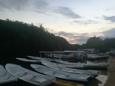 小岛很繁忙,但不知出于什么原因,这里却给人一种安静的感觉。我们怀着激情来到这里,体验皮划艇来挑战自我,我们觉得所有协调能力不错的夫妻都应该体验下。我们花了15万印尼盾,一个小时来测试我们的协调能力,但我们发现我们做不到,于是我们回到岸边,又花了15万银盾请导游教我们。这里是我们非常喜欢的美丽宁静的地方,可以让我们好好练习皮划艇技巧。这是岛上一个神奇的小地方。我很幸运,我住的地方的主人开车送我到这个地方。她能说这里的方言,给我找了个船夫。船夫是一个和蔼可亲的老人,他不会说英语,但笑容可掬,和蔼可亲。我花了折合11美元租了一艘属于自己的船。我们出发后进入红树林的暗道。里面有小鸟和自然景观,很宁静,他用竹竿推着船。我们走到尽头时,船夫一路逆流撑船返回。我喜欢这种体验,喜欢看到岛上的美丽景色。