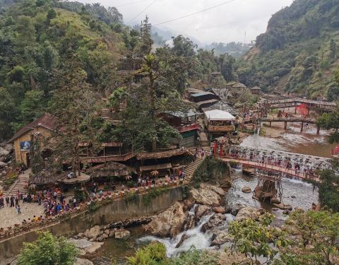 猫猫村位於越南北部沙坝镇,該村依山而建,風味原始,但当中亦佈满很多手工艺攤擋,售買居民之特色產品,遊人於此,边購物、边賞景,又能细看民風,一舉多得。