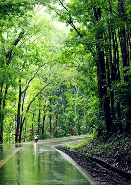 去往巧克力山会路过这段森林,高高的翠绿的树叶在雨滴的滋润下亮亮的闪着光,能闻到泥土的芬芳清新湿润,下过雨路有点湿滑,看着两边的树缓缓的退向两旁那瞬间仿佛去赴一场青春的约,不相聚,不散场。路过~要不是...