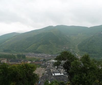 ...山在眼前,刚好有一片云在山顶,看上去就像是富士山的感觉,并且,我们住的森林公园应该就在山腰上吧