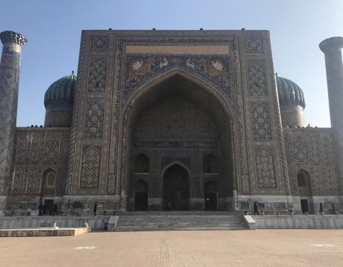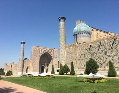 撒马尔汗最值得来的地方!建筑宏伟,一天中,不同光线照耀下,外观变换色彩,非常好看