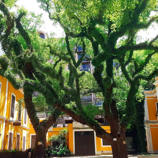 仁慈堂婆仔屋 从大炮台下来,打算走到三盏灯街区,路过了昨天走到的疯堂斜巷,又逛了逛仁慈堂婆仔屋院内好大的 樟树