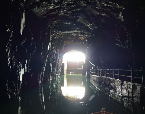 马祖北海坑道,我们在晚上乘船可以在这里看蓝眼泪,300台币,是少有的要收费的景点。不过周边也很美,能看到大海,以后会再来,参观南竿游客中心等。坑道比起金门的要小巧得多。