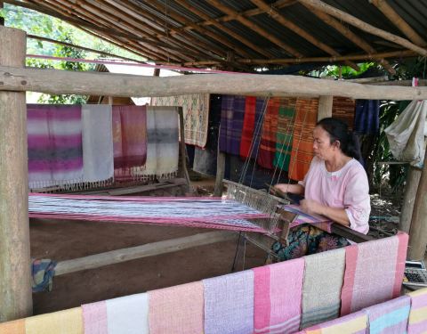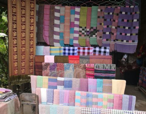 威士忌村位于去巴乌石窟的路上,在这里可以看到很多手工织布机以及手工艺品如围巾、挂毯等。
