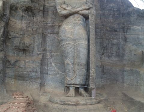 伽尔寺,是波隆纳鲁沃一处有名的旅游景点。庙宇是由不知名的艺术家在一整块巨型花岗石头上雕刻而成,花岗岩巨石上刻有四座不同造型的佛像,充分展现了当时僧伽罗文明的佛教造型艺术。伽尔寺虽规模不是较大,但整体氛围中充满着庄严肃穆、不可侵犯的气息,让人深受震撼、驻足静思良久。佛像介绍——打坐静思佛像打坐静思佛像高4.6米,坐于莲花座上。佛像后面有四个小佛像,装饰有龙的花纹。据考古学家和历史学家考证,这座佛像的造型在古代僧伽罗雕刻艺术中十分少见,明显受到了大乘佛教的影响。佛像介绍——Vidyhadhara佛像Vidyhadhara佛像高1.4米,安置在人造的石洞中,与打坐造型的佛像类似,不过雕刻的更加精致。莲花底座装饰有狮子图案花纹,佛像后方也有靠背和华盖,佛像头部左右还刻有翻天和毗湿奴造像。