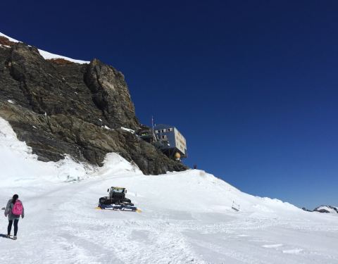 像阿莱奇冰川这样的景色,啥话都不用多说,只要来就值了!欧洲之巅少女峰形成的几亿年的冰川,即将在这几十年消亡,此时不看更待何时。上山的缆车在一片浓雾中,没想到山顶拨云见日!