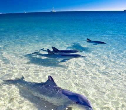 海豚海滩是坎昆小朋友最喜欢的一座海滩,因为这里可以看到活泼可爱的海豚,这里的海水非常的清澈,沙滩洁白如雪。海豚经常会游到海边,问游客讨药吃的真的是非常的可爱。