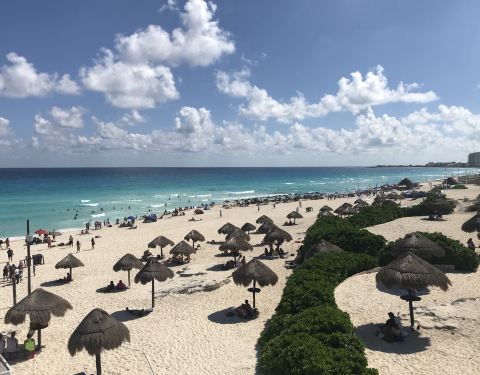 这是坎昆一个相当有名的海滩,人很多,大家都排队和经典的坎昆牌子合影,整个海滩非常漂亮,很干净,再加上蓝天白云,环境非常好