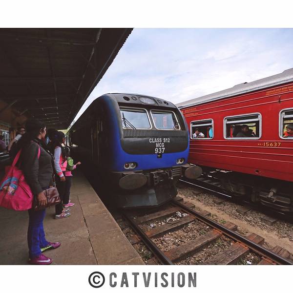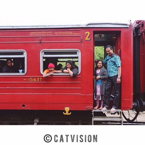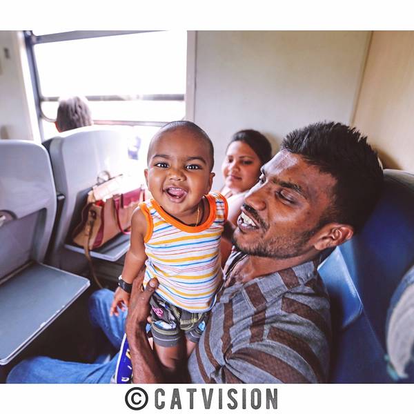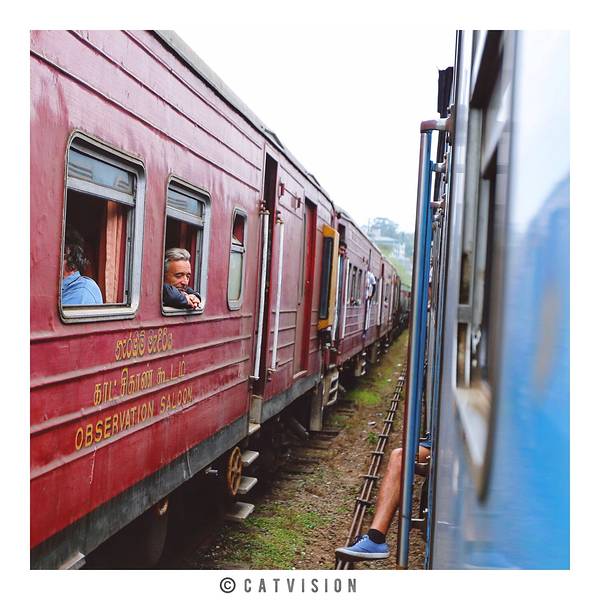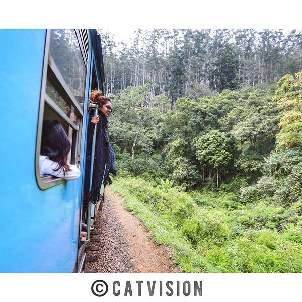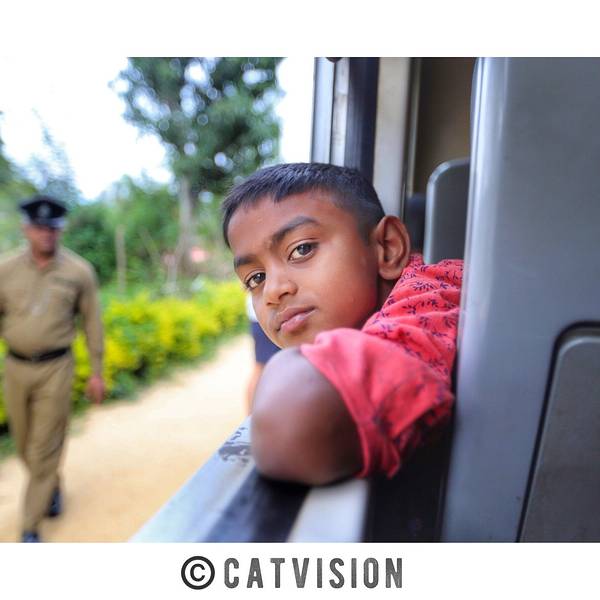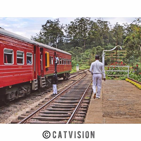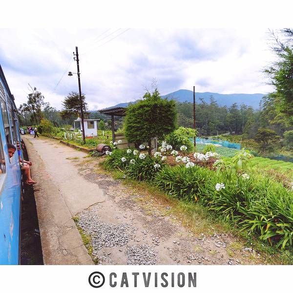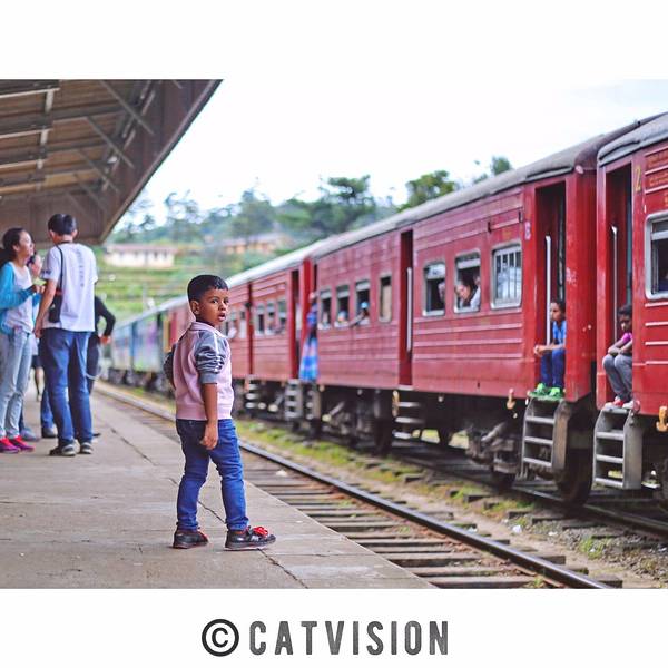 来说说,为什么要坐这班火车,是因为斯里兰卡一共有两种火车值得一乘。 一个是海上小火车,从加勒开往科伦坡,一个则是高山小火车,可以体验茶园风情~我们的火车要临近一点才会来,十二点开始售票。所以我们在站台耐心地等待,sandun则带着我们的行李先行前往下一个大站ella(埃勒)。站台精心布置过,花花草草,生机勃勃。站台上的两条狗子也一点都不怕生,跟人互动很好。捕捉到小鸟一只~这一家挺有意思的,虽然我们语言不通,但是大家都微笑着打招呼,我们把随身带的糖果跟她们分享,她们则热情地邀请我们吃当地炒饭。列车时间表~十二点多,火车票开售,工作人员手脚也颇为麻利~不过火车票真的好便宜~才90卢比一张(折合人民币5元不到)。 我们现场买了二等座,不过其实都不固定座位的,上车后,自己找空位就行。其他火车进站时,我们也没闲着,在旁边抓拍人文~这一家四口特别有趣,一直盯着我们笑,我们也回馈以微笑~后来猫爸还拿着糖果,穿过了铁轨(当然看到很多人都这么做了,猫爸也不怕了,跟着做了。虽然有点危险,但还好火车停留了很长时间),给了他们。白衣服的是工作人员~不少当地人看到我们这样模样的外国人还是非常热情的,总是笑脸相迎,然后摆出各种造型,挥手示好。火车行驶过程中,车门是不关闭的,所以很多人就像这两个外国人一样爱“挂火车”。不过由于车速并不低,而且两旁枝丫很多,一般不建议大家这么做,非常危险。 回国后,看到一篇文章,说是有一群中国人在火车上玩耍拍照,有个人半坐在车厢口,腿挂在外面看风景,没想到就被一个站台挂住了,立刻甩了出去……结果就命丧铁轨了……非常吓人…… 所以sandun在跟我们道别的时候,也请叮咛万叮嘱,千万不可以挂火车。不一会,我们的火车就来了!车厢里基本都坐满了人,也没啥位置,我们就站着,顺便拍拍照。车厢内还有流动的小贩,正在卖热茶。猫爸挺厉害的,虽然不懂英语,但是居然也跟当地人打成一片,还拐了一个当地小孩哈哈哈!猫爸笑称这是他的“斯里兰卡闺女”~~蓝皮小火车哐当哐当地穿越在高山茶园间,一路风光无限好~ 我个人比较推荐大家坐在左侧的位置,可以看到更多的高山风貌~当然左右两侧,各有不同的风景。这个当地小哥人挺好的,我趴在门口,跟他一起看景色,他像个小导游一样,不停给我介绍沿途的风光,也嘱咐我拍照时候务必当心。 我在这块拍照的时候,基本都是等快到站了,车速放缓,前后无明显障碍物的时候,才伸出相机抓拍几张~大家也要注意安全呢~左边被许多外国游客霸占了,只能从缝隙中,盲拍两张。一到这样的“弯道”时,大家都会特别兴奋,不少外国人都探出了脑袋。如梦如幻的高山茶园,仙气飘飘。偶尔有两车相会,也是拍摄人文的大好机会~沿途还可以看到不少当地的采茶女正在辛勤工作。有大胆的人,就会把整个身子放在外面,看得人胆战心惊。每个小站,都有不同的韵味。车厢内,我们成功找到了位置坐了下来。刚一坐下,前面的小朋友就立刻探出脑袋,打量着我们,笑得一脸羞涩。 我们给了他们糖果(大白兔奶糖哈哈!),还帮他们拍了一次成像的照片,他们立刻开怀不已,不停地笑,不停地上蹿下跳,和我们玩得不亦乐乎~ 我也趁机拍了好多哈哈~特别喜欢这个小萝莉,笑容超级漂亮!眼睛也会说话~这个小弟弟虽然不懂英文,但是很有镜头感,所以我立刻坐在窗边,给他拍了一组图。第一次见到拍立得照片的他们兴奋不已,抢着拿照片给他们的爷爷看。小正太这么邪魅一笑,感觉小心脏被击中了,砰砰跳啊哈哈哈!哪怕有再多的烦心事儿,一看到这样的笑容,烦恼立刻烟消云散