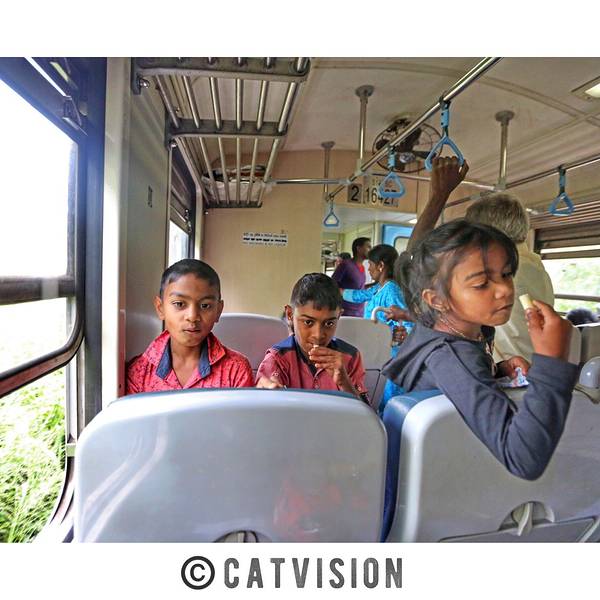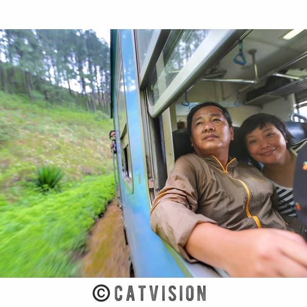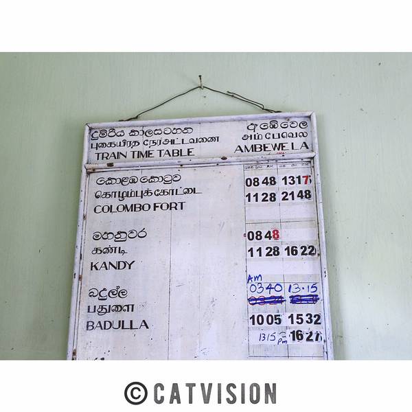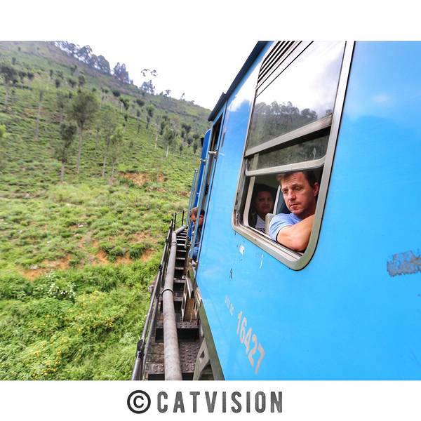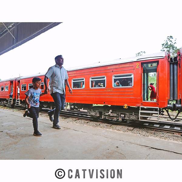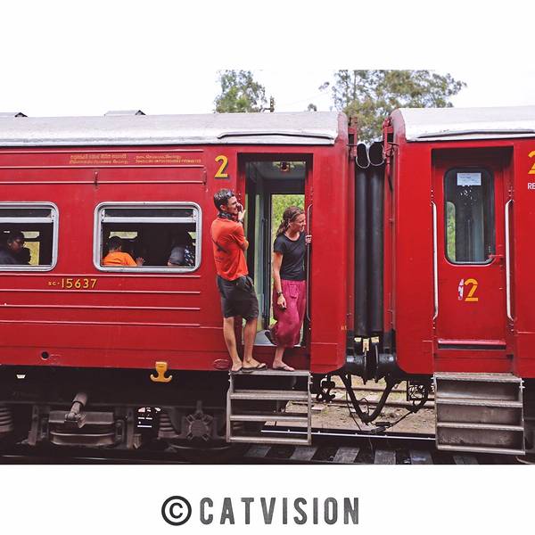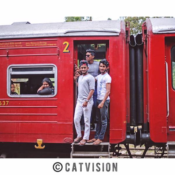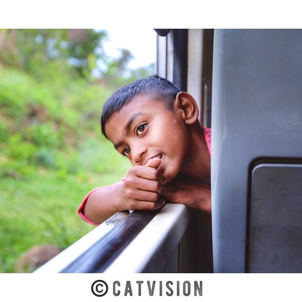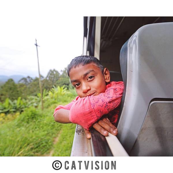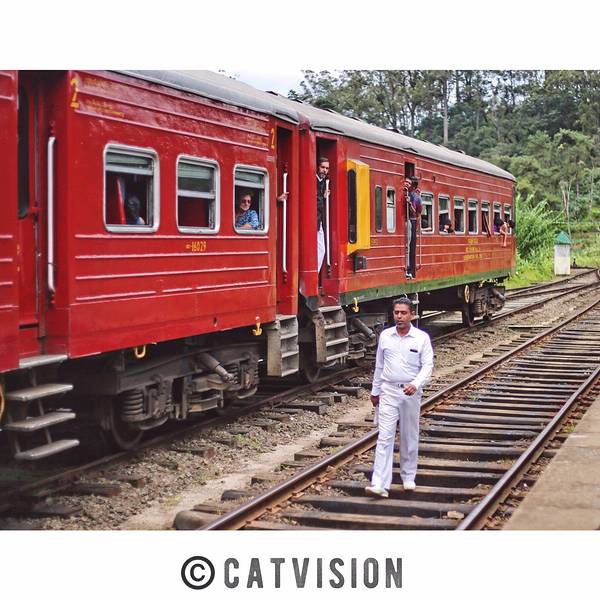 来说说,为什么要坐这班火车,是因为斯里兰卡一共有两种火车值得一乘。 一个是海上小火车,从加勒开往科伦坡,一个则是高山小火车,可以体验茶园风情~我们的火车要临近一点才会来,十二点开始售票。所以我们在站台耐心地等待,sandun则带着我们的行李先行前往下一个大站ella(埃勒)。站台精心布置过,花花草草,生机勃勃。站台上的两条狗子也一点都不怕生,跟人互动很好。捕捉到小鸟一只~这一家挺有意思的,虽然我们语言不通,但是大家都微笑着打招呼,我们把随身带的糖果跟她们分享,她们则热情地邀请我们吃当地炒饭。列车时间表~十二点多,火车票开售,工作人员手脚也颇为麻利~不过火车票真的好便宜~才90卢比一张(折合人民币5元不到)。 我们现场买了二等座,不过其实都不固定座位的,上车后,自己找空位就行。其他火车进站时,我们也没闲着,在旁边抓拍人文~这一家四口特别有趣,一直盯着我们笑,我们也回馈以微笑~后来猫爸还拿着糖果,穿过了铁轨(当然看到很多人都这么做了,猫爸也不怕了,跟着做了。虽然有点危险,但还好火车停留了很长时间),给了他们。白衣服的是工作人员~不少当地人看到我们这样模样的外国人还是非常热情的,总是笑脸相迎,然后摆出各种造型,挥手示好。火车行驶过程中,车门是不关闭的,所以很多人就像这两个外国人一样爱“挂火车”。不过由于车速并不低,而且两旁枝丫很多,一般不建议大家这么做,非常危险。 回国后,看到一篇文章,说是有一群中国人在火车上玩耍拍照,有个人半坐在车厢口,腿挂在外面看风景,没想到就被一个站台挂住了,立刻甩了出去……结果就命丧铁轨了……非常吓人…… 所以sandun在跟我们道别的时候,也请叮咛万叮嘱,千万不可以挂火车。不一会,我们的火车就来了!车厢里基本都坐满了人,也没啥位置,我们就站着,顺便拍拍照。车厢内还有流动的小贩,正在卖热茶。猫爸挺厉害的,虽然不懂英语,但是居然也跟当地人打成一片,还拐了一个当地小孩哈哈哈!猫爸笑称这是他的“斯里兰卡闺女”~~蓝皮小火车哐当哐当地穿越在高山茶园间,一路风光无限好~ 我个人比较推荐大家坐在左侧的位置,可以看到更多的高山风貌~当然左右两侧,各有不同的风景。这个当地小哥人挺好的,我趴在门口,跟他一起看景色,他像个小导游一样,不停给我介绍沿途的风光,也嘱咐我拍照时候务必当心。 我在这块拍照的时候,基本都是等快到站了,车速放缓,前后无明显障碍物的时候,才伸出相机抓拍几张~大家也要注意安全呢~左边被许多外国游客霸占了,只能从缝隙中,盲拍两张。一到这样的“弯道”时,大家都会特别兴奋,不少外国人都探出了脑袋。如梦如幻的高山茶园,仙气飘飘。偶尔有两车相会,也是拍摄人文的大好机会~沿途还可以看到不少当地的采茶女正在辛勤工作。有大胆的人,就会把整个身子放在外面,看得人胆战心惊。每个小站,都有不同的韵味。车厢内,我们成功找到了位置坐了下来。刚一坐下,前面的小朋友就立刻探出脑袋,打量着我们,笑得一脸羞涩。 我们给了他们糖果(大白兔奶糖哈哈!),还帮他们拍了一次成像的照片,他们立刻开怀不已,不停地笑,不停地上蹿下跳,和我们玩得不亦乐乎~ 我也趁机拍了好多哈哈~特别喜欢这个小萝莉,笑容超级漂亮!眼睛也会说话~这个小弟弟虽然不懂英文,但是很有镜头感,所以我立刻坐在窗边,给他拍了一组图。第一次见到拍立得照片的他们兴奋不已,抢着拿照片给他们的爷爷看。小正太这么邪魅一笑,感觉小心脏被击中了,砰砰跳啊哈哈哈!哪怕有再多的烦心事儿,一看到这样的笑容,烦恼立刻烟消云散