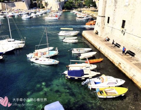 这个码头在Lawrence城堡下方,与城墙上的Bokar堡垒遥遥相对,是当年为了防御威尼斯舰队而建的。在一处室内的门楣上刻着” "Non bene pro toto libertas venditur auro自由是世界上最宝贵的东西,千金不换“这句话。或许,这就是克罗地亚民族精神最好的写照吧! 有很多私人船主正在招揽生意,一小时亚得里亚海近海游览。宝石般的海水晶莹剔透,映衬着白色的点点帆船,特别美!
