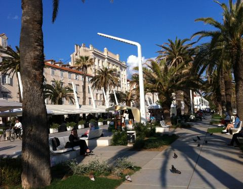 紧挨戴克里先宫的是城中最繁华的大街,名为海岸,海滨大道覆盖白色帐篷的咖啡厅露天座,面对船进船出的港口