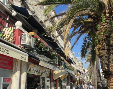 紧挨戴克里先宫的是城中最繁华的大街,名为海岸,海滨大道覆盖白色帐篷的咖啡厅露天座,面对船进船出的港口,听着汽笛或旁边教堂钟声消磨时光;众多工艺品小摊位、饭店、酒店,当傍晚夕阳西下时沐浴着落日余晖在海湾散步…