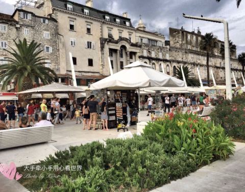 RIVA是斯普利特最繁华的旅游休闲一条街,边上就是戴克里先宫,整条海滨大道都是覆盖着白色帐篷的...