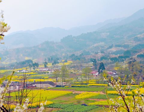 彭州花园沟,位于葛仙山脚下,浅丘地貌,色黄、上灰、皮薄、离核、酸甜适度的花园沟李子远近闻名。 每年春天,桃花、李花、油菜花及各种野花竞相怒放,漫坡白色、红色、黄色的花层层堆叠,美丽彭州生态田园呈万里春色,前去赏花的游人络绎不绝。
