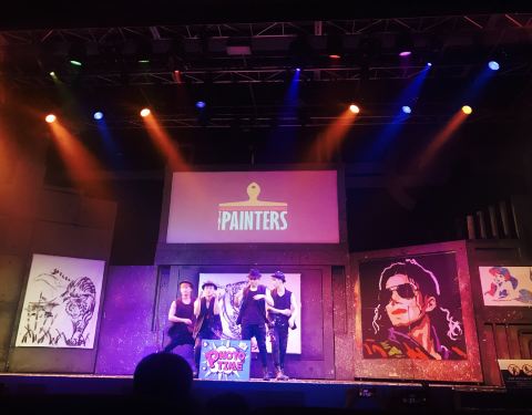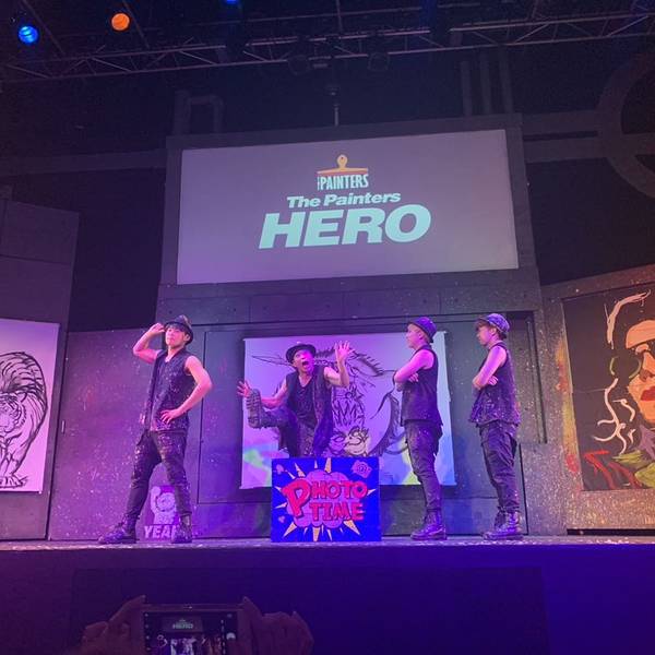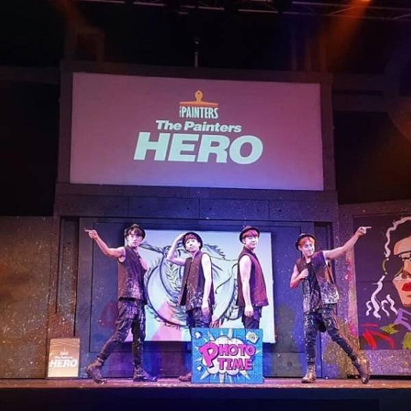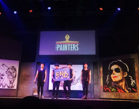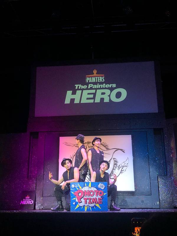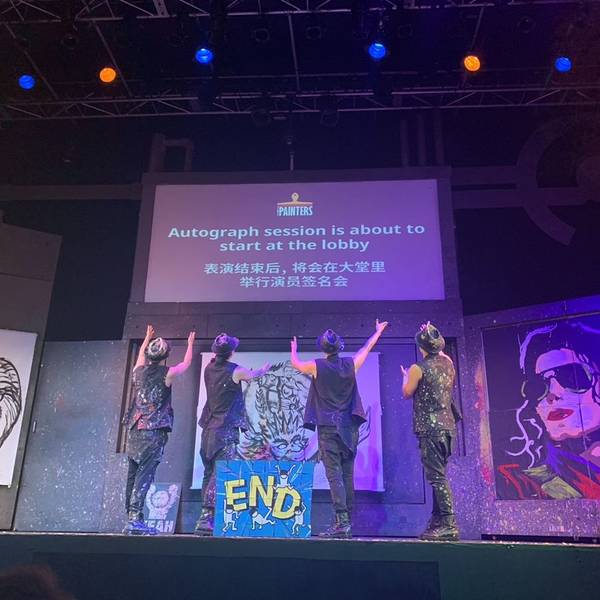 整场show从头到尾都是由四个男生表演完成,可以看到很多不一样的画,油画,涂鸦,素描,光影绘画,还有水中作画等等,种类非常多。所有的画都是现场画的,画画的水平非常高也非常的流畅。表演全程是没有说话的只有一些语气词,表演者不仅要画画还跳舞,同时还有观众互动的环节,当场在观众席上选人,非常有意思。同时有很多搞笑的环节,在搞笑的同时还会不断的在作画上给观众惊喜,非常有意思!整场演出看下来大概一个多小时,看完了以后会举一个END的牌子然后大家就可以拍照咯。离场出去后,表演者们会在过道上跟大家打招呼,也可以上去跟表演者们拍照,都非常热情。也会有许多涂鸦秀的周边卖,衣服上都是印的他们所画的画,还蛮有纪念意义的。