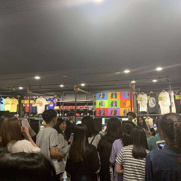 印象最深刻的就是这幅迈克尔. 杰克逊 ,四个小哥哥各自作画,本来觉得乱七八糟摸不着头脑。但是搞怪以后拼在一起居然变成了一幅佳作,非常震撼!因为表演时间不能在场内使用手机,所以没能分享给大家有趣的表演过程太可惜了。不过他们表演真的很棒,站在美术生角度看他们的涂鸦颜色使用的也很好 (可能职业病,一上来我就是先注意色调 )涂鸦秀表演结束后还有签售会,就是这个小哥哥!人气超级高可能与颜值有关,O(∩_∩)O哈哈~
