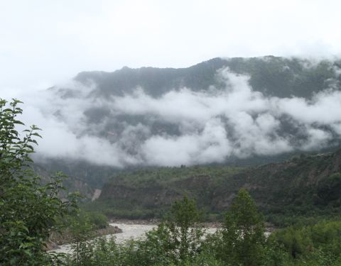 在雅鲁藏布江游玩,必须乘坐景区交通车。不过江水在这里并不是很急,周围的景观显得比较的一般
