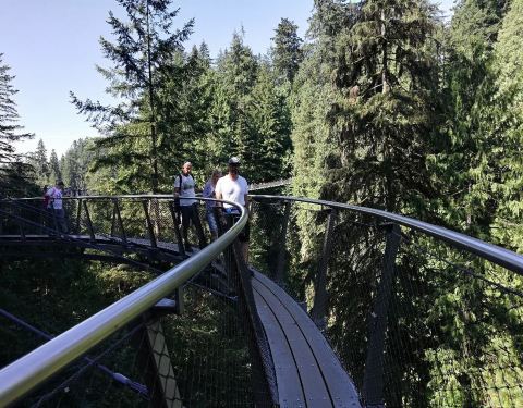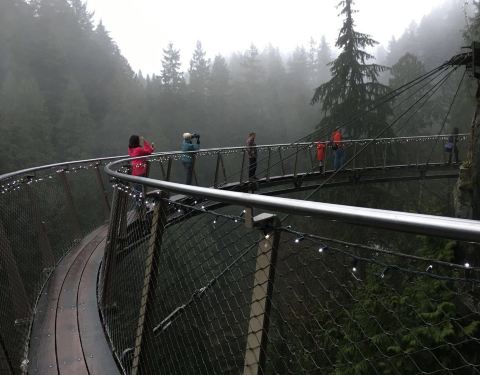 沿途的景色非常不错,有的地方也挺惊险的。整段边走边玩边拍照走完大概十来分钟,比较轻松,景色也很值得悬崖栈道Cliff Walk是卡皮拉诺吊桥公园里的一段沿着悬崖而建的人行栈道。沿花岗岩峭壁表面设置的悬空步道,是观赏壮丽峡谷景观的绝佳场所。沿途的景色非常不错,有的地方也挺惊险的。让我印象深刻的一段是沿着悬...悬崖栈道Cliff Walk是卡皮拉诺吊桥公园里的一段沿着悬崖而建的人行栈道。沿花岗岩峭壁表面设置的悬空步道,是观赏壮丽峡谷景观的绝佳场所。沿途的景色非常不错,有的地方也挺惊险的。让我印象深刻的一段是沿着悬崖有半圆的凸出去的栈道可以看脚下离地面到底有多高。整段边走边玩边拍照走完大概十来分钟,比较轻松,景色也很值得。 展开