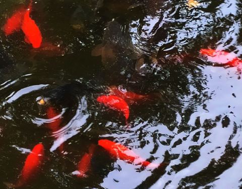 观澜亭竖立着明代胡缵宗所书的"趵突泉"和清代王钟霖所题的"第一泉"两块石碑,而亭前的三个泉眼咕咚咕咚地向上冒水,清晰可见泉池中自由自在游弋的鱼儿