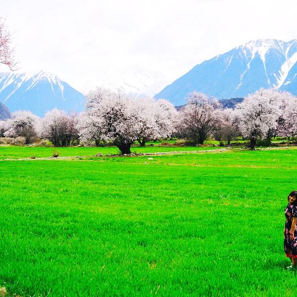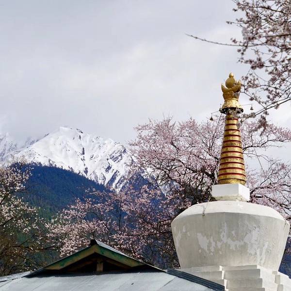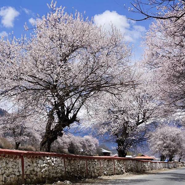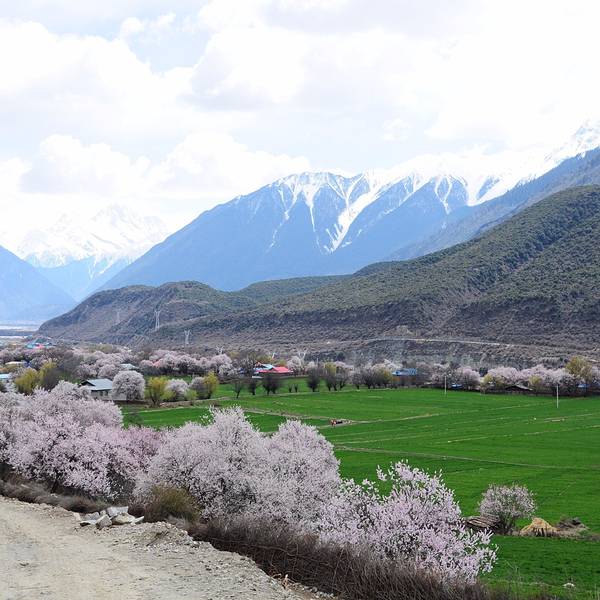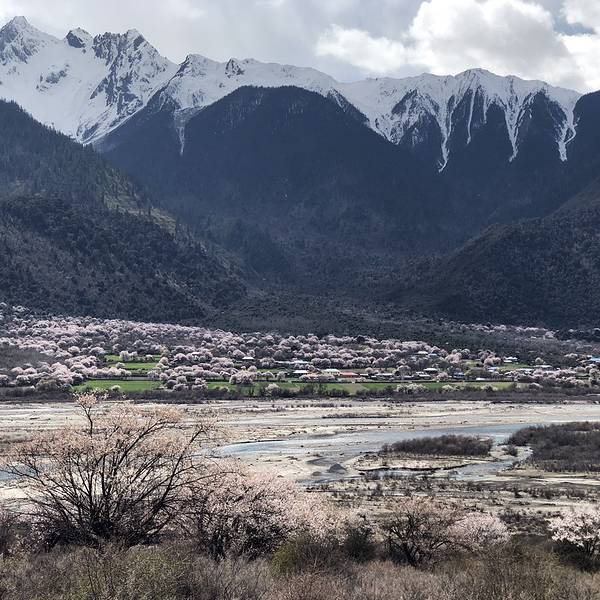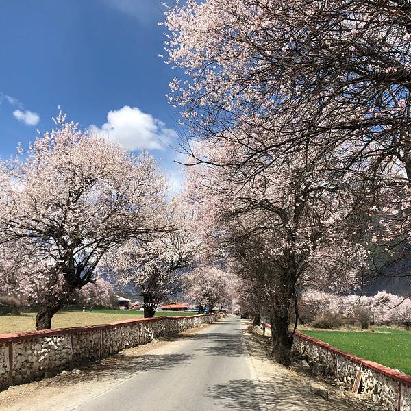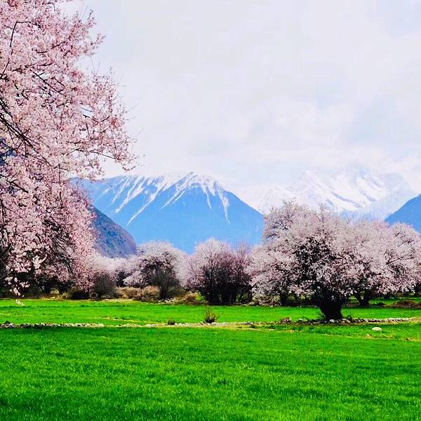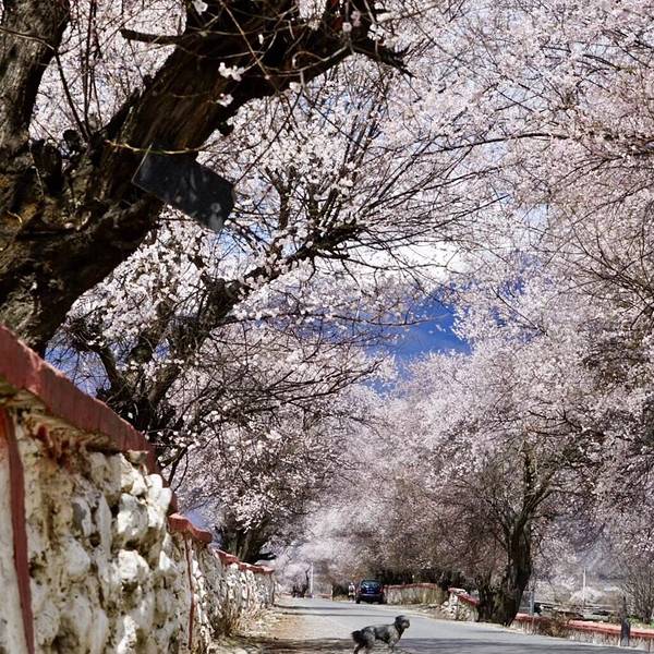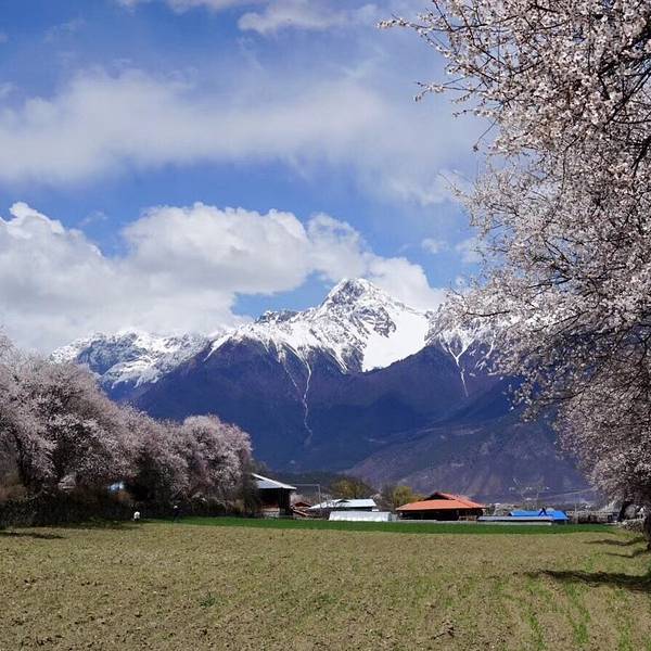 特别庆幸决定来倾多和玉许试试看!美呆了!虽然没赶上盛开期,但是刚下过小雨,零落的花瓣铺满了小路,偶尔飘过一群藏香猪,两边和远方绵延的雪山,真的是人间仙境!ps:县道路况超好!