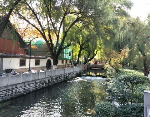 济南这边的泉水实在是太多了,说是72口泉,可能也不足以形容这边的泉水之多。 古温泉其实是一个比较有意思的泉眼,因为流淌出来的水有点温度,所以的话就叫做有温度的温泉。 从趵突泉这边过去五龙潭公园就能够看得见了。