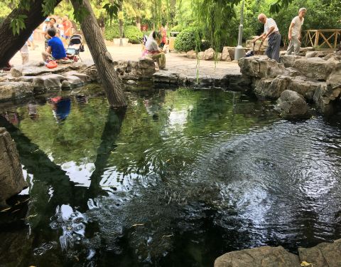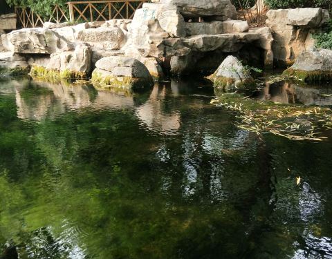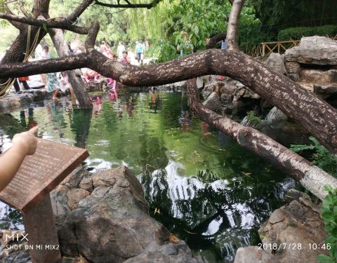 又是一个很喜欢的泉,和月牙泉的距离不远,两处泉水想通,虬溪泉因其喷涌而出的水流,如同古时传说中头上生有双角的虬龙盘曲吐水,所以将这眼泉起名为虬溪泉,水量充足,清澈见底,鱼儿来回游弋,周边树木茵茵,景色十分宜人,在这地方歇息,很棒,值得一来的地方。