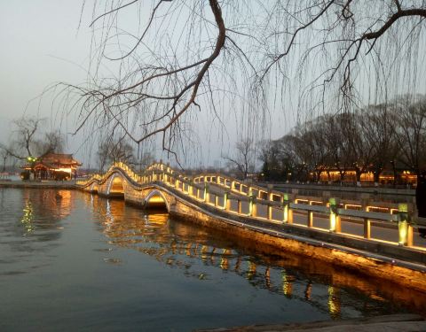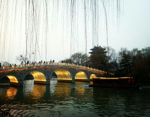 鹊华桥位于大明湖百花洲,是大明湖内最出名的桥之一,由于其名为鹊华,寓意十分好,所以很多新人借着...