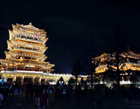 因为晚上要去看灯光秀,就选择了在鹊华楼用餐,吃过晚餐就路过这里。傍晚的鹊华桥人气爆棚,各种锻炼的市民络绎不绝……