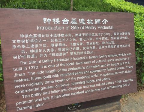 ...建于明朝洪武年间,是济南“明湖晨钟”景点的组成部分之一,如今只余下台基仍然屹立,见证历史的变迁