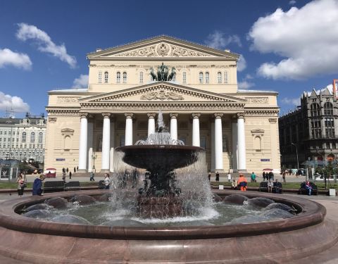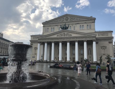 ...场,夏天的喷水池还是挺不错的,吸引孩子去玩水,大剧院旁是奥斯特洛夫斯基,写大雷雨的剧作家的雕像莫斯科大剧院前的小广场,夏天的喷水池还是挺不错的,吸引孩子去玩水,大剧院旁是奥斯特洛夫斯基,写大雷雨的剧作家的雕像。大剧院以芭蕾闻名世界,乌兰诺娃曾是这里的台柱。