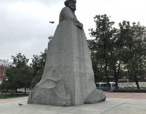距离红场不远,其北面是莫斯科大剧院,西边是俄罗斯青年模范剧院,东面是俄罗斯国家学术马利剧院,三面被剧院环绕因此称为剧院广场,面积不是很大,有个水池。南面马路对面是卡尔马克思的雕像