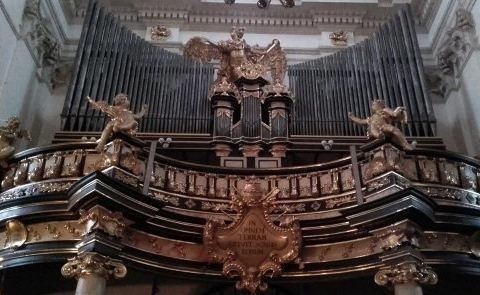 巴洛克风格教堂,从外面看要比教堂里面显得更华丽,外面的圣徒雕像十分生动。