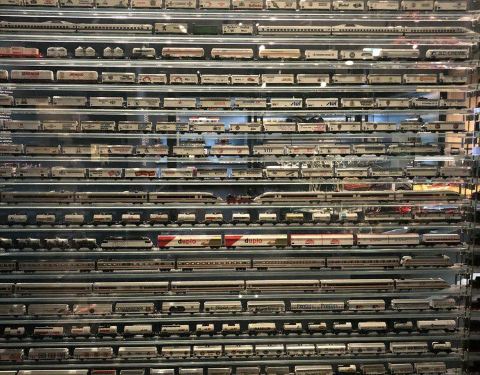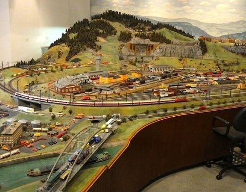 ...个电动模型室,里面是一个山区小镇的微缩模型,由工作人员控制几十条铁轨和列车的运行,场面非常壮观