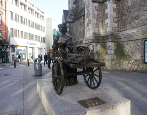 莫莉马隆雕像是都柏林街头的一座著名的雕像,他是爱尔兰大饥荒时期的伟大母亲,他靠自己勤劳的双手养活着家里4个小孩,成了爱尔兰人民不屈不挠自力更生的象征,是爱尔兰人非常敬重的人。