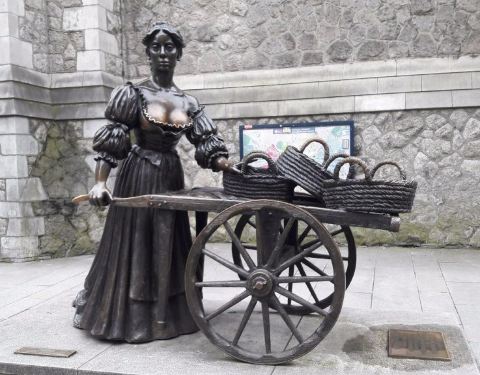 都柏林的莫莉马隆雕像诉说着一个非常凄美的故事。她原本是一名普通的农妇,在爱尔兰大饥荒时期,她用自己的劳动一人担负着家庭的生活,养活着家里许多的孩子,最后还是因为劳累过度而身亡。人们为了纪念这位勤劳的母亲,而修建的这座雕像,现在已经成了都柏林的标志之一。