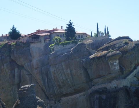 圣斯蒂法努修道院是梅黛奥拉最为著名的一处修道院。修道院建在悬崖之上,离地面大约有100多米高,如果有人采购商品,需要运到修道院,修道院上就会放下空篮子,采用绳索吊装的方式来取得,真的是超级的古老。