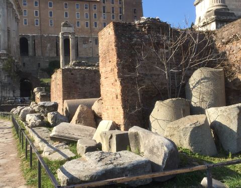 又是一个纪念英雄的圆柱,发现用圆柱体呀方形纪念碑呀纪念英雄似乎已经是一个在全世界盛行的习惯了,而这根圆柱是用来纪念拜占庭帝国国王佛卡斯的。它位于古罗马广场的中心地带,在这片废墟中保存已经算是相当不错的了。 所以对于雨桐来说这根柱子只是这个地区所经历的历史文化的象征。是古罗马沧桑而斑斓的历史。是一段经历。其实罗马这个地方真心看的是文化,如果知之甚少,只能是到此一游的拍照罢了。