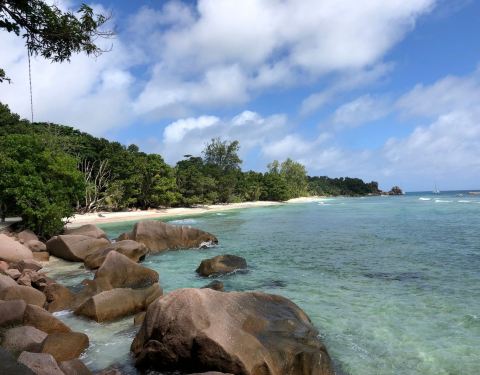 拉迪格岛北海岸的一处小海滩,是很棒的浮潜场地。