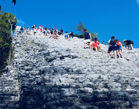 深藏在尤卡坦半岛深处的科巴遗址,是一处比奇琴伊察遗址还要古老的玛雅文明。这里的金字塔是整个玛雅文明中最高的一座,台阶十分的陡峭,上面的神殿代表着至高无上的神权。攀爬这样的台阶还真的需要勇气,尤其是...