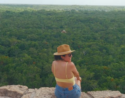玛雅废墟,这是尤卡坦半岛唯一开放让人攀登的金字塔。攀登塔顶不算太累,塔顶风光无限。