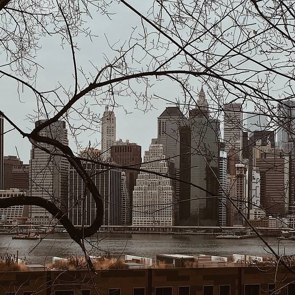 從橋上遠眺紐約,高聳的建築物 ,非常震撼