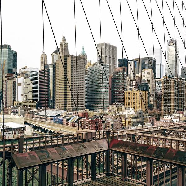 在布鲁克林大桥公园,望着对面曼哈顿岛,高楼耸立,它是纽约曼哈顿最亮点的景区之一,左前方隐约可见自由女神像,右前方是布鲁克林大桥和曼哈顿大桥,布鲁克林大桥横跨纽约东河,连接着布鲁克林区和曼哈顿岛,二座桥各有特点,各有它的故事,布鲁克林大桥附近的老建筑,与曼哈顿大桥相互衬托,成为一道美丽的风景,吸引无数的游客在此留影,这儿也是许多电影拍摄的场景。