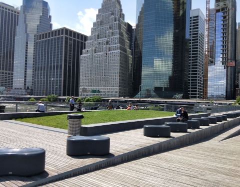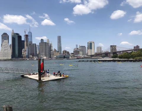 布鲁克林大桥公园位于布鲁克林区一段,在公园内隔河可见曼哈顿的高楼