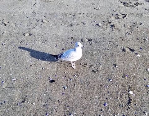 每天都会去海滩喂鸽子~~虽然起初挺害怕它们的,但还是贱贱的想去,眼看着没两天要回家了,我也找到了喂它们的诀窍,再也不会被它们追着跑了,也能掌握它们了!海滩上全是紫色的贝壳,在清澈的能净化人心的海水里泛着光儿,太美了就是忒冷了,几分钟就冻回去了……哈哈