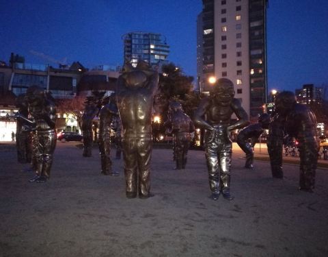 我们从史丹利公园一路步行出来,就到了英吉利湾,这里正在举行一年一度的嘉年华,马路都封了,好多游客,打扮的五彩缤纷,海滩上有好多晒太阳的人,很悠闲,还有一些艺人在兜售自己的画作